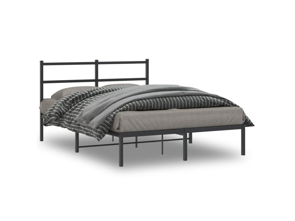Kovový rám postele s čelem černý 140 x 190 cm 355365