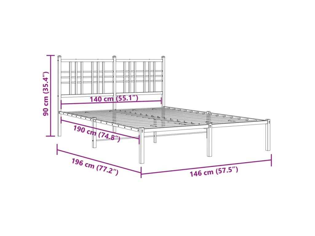 Kovový rám postele s čelem černý 140 x 190 cm 376324