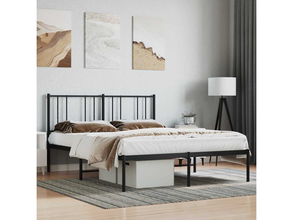 Kovový rám postele s čelem černý 140 x 200 cm 352481