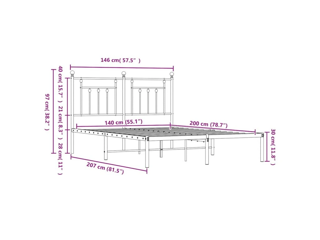 Kovový rám postele s čelem černý 140 x 200 cm 353538