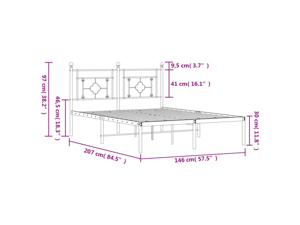 Kovový rám postele s čelem černý 140 x 200 cm 374340