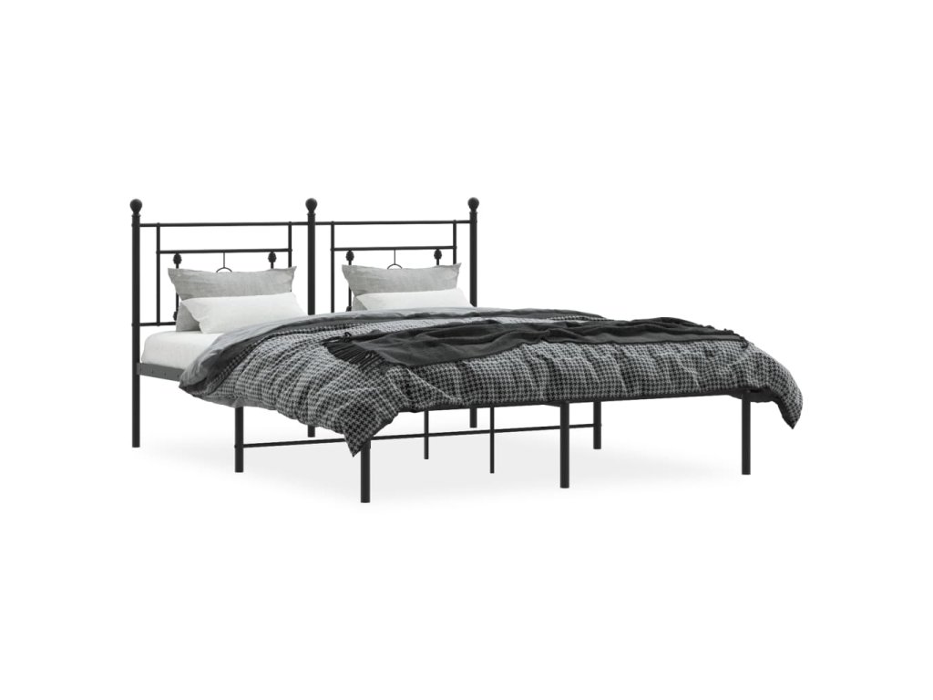 Kovový rám postele s čelem černý 160 x 200 cm 374342