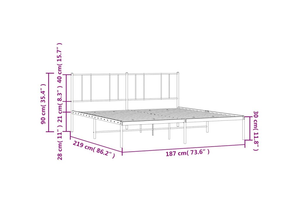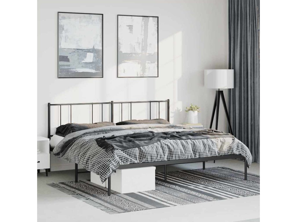 Kovový rám postele s čelem černý 183 x 213 cm 352485