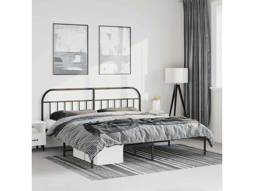 Kovový rám postele s čelem černý 183 x 213 cm 353640