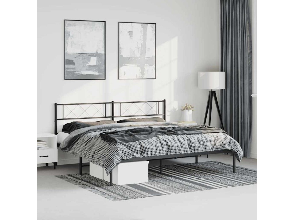 Kovový rám postele s čelem černý 183 x 213 cm 372282