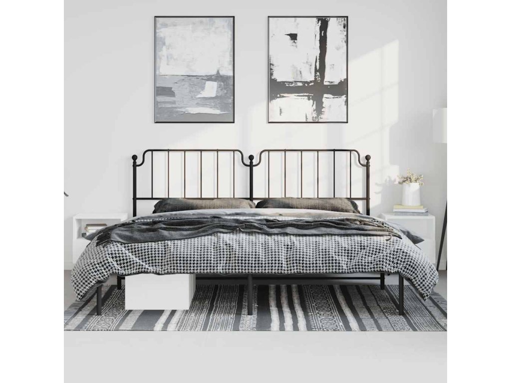Kovový rám postele s čelem černý 183 x 213 cm 373892