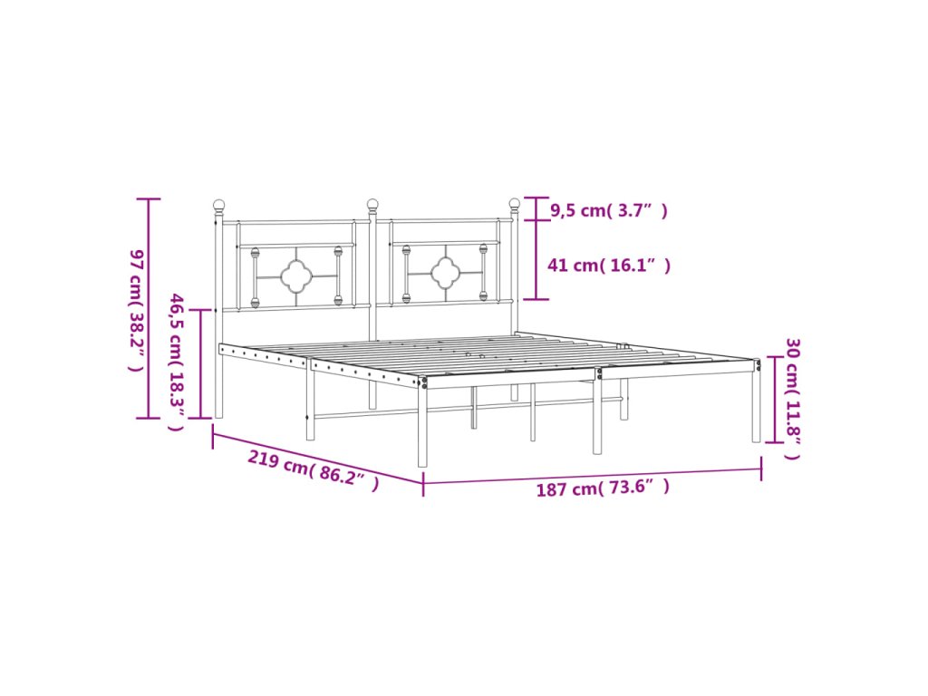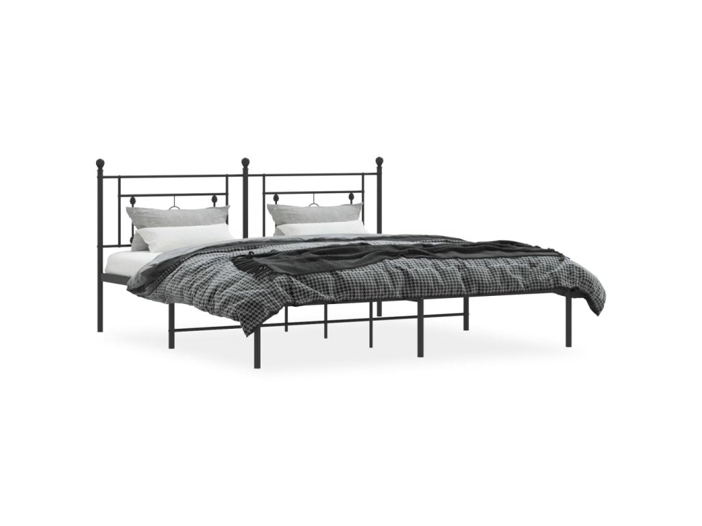 Kovový rám postele s čelem černý 183 x 213 cm 374344