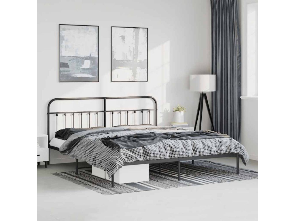Kovový rám postele s čelem černý 193 x 203 cm 352584