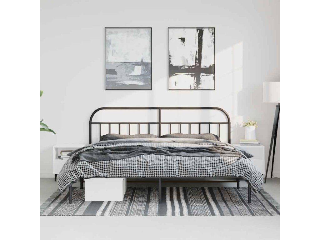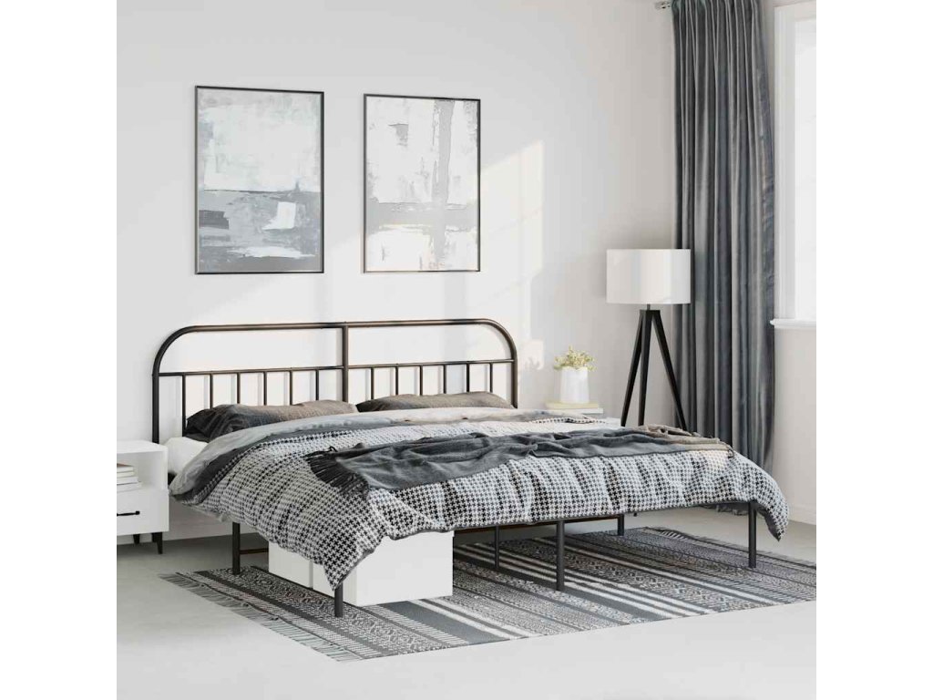 Kovový rám postele s čelem černý 193 x 203 cm 353641