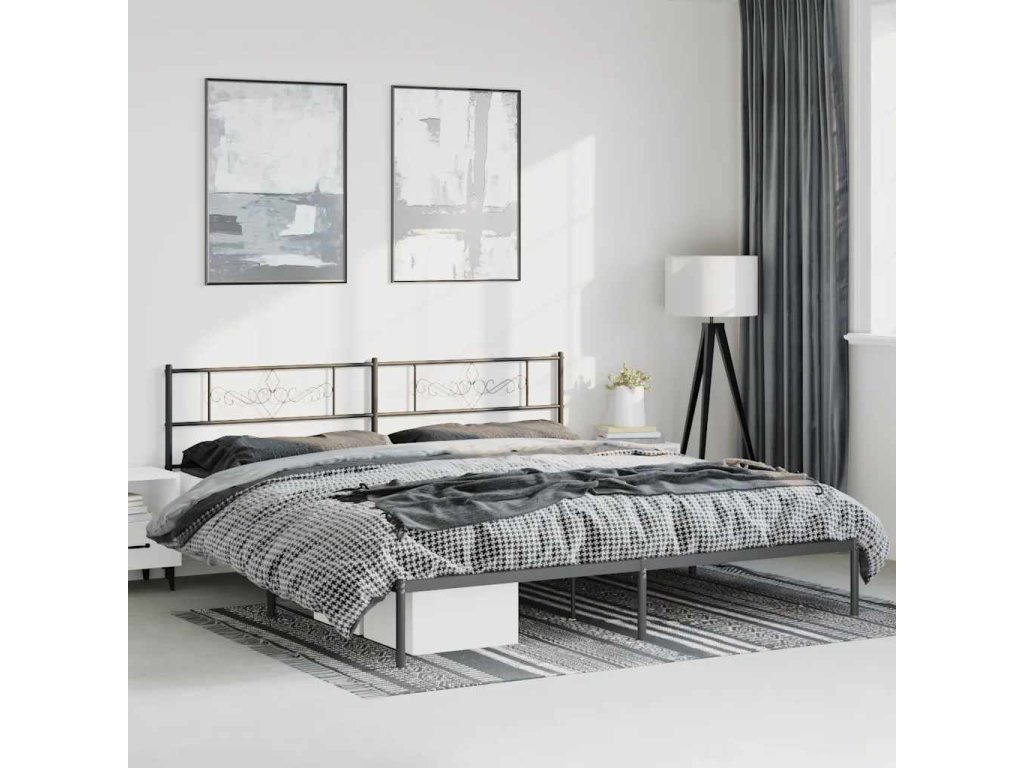 Kovový rám postele s čelem černý 193 x 203 cm 355273