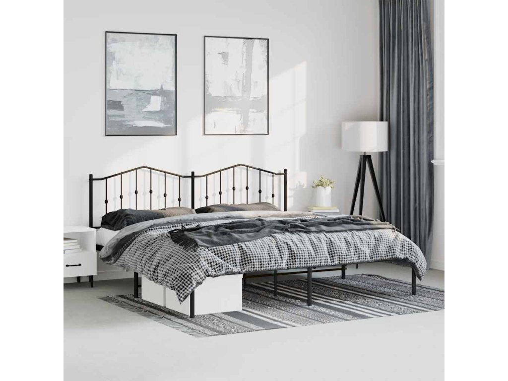 Kovový rám postele s čelem černý 193 x 203 cm 373795