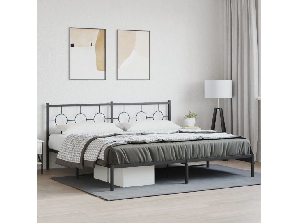 Kovový rám postele s čelem černý 193 x 203 cm 376232