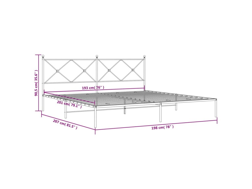 Kovový rám postele s čelem černý 193 x 203 cm 376508
