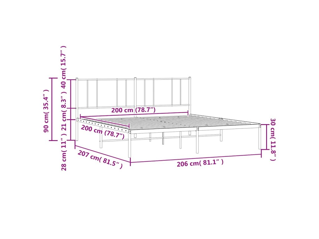- Kovové lamely a nohy: Kovový rám postele je doplněn kovovými rošty a středovými nohami, které poskytují matraci tolik potřebnou oporu a prodyšnost.