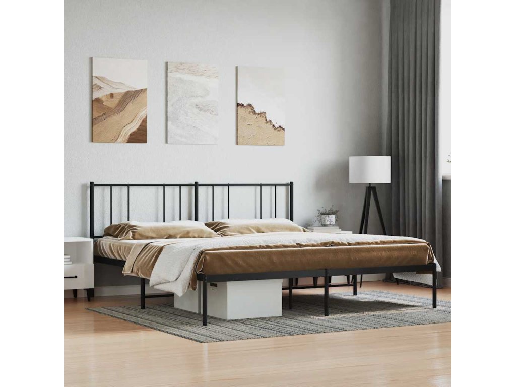 Kovový rám postele s čelem černý 200 x 200 cm 352487