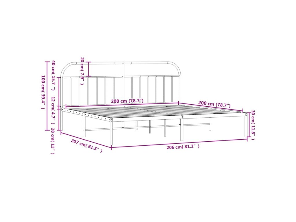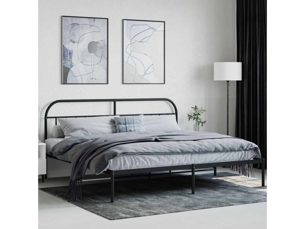 Kovový rám postele s čelem černý 200 x 200 cm 353642
