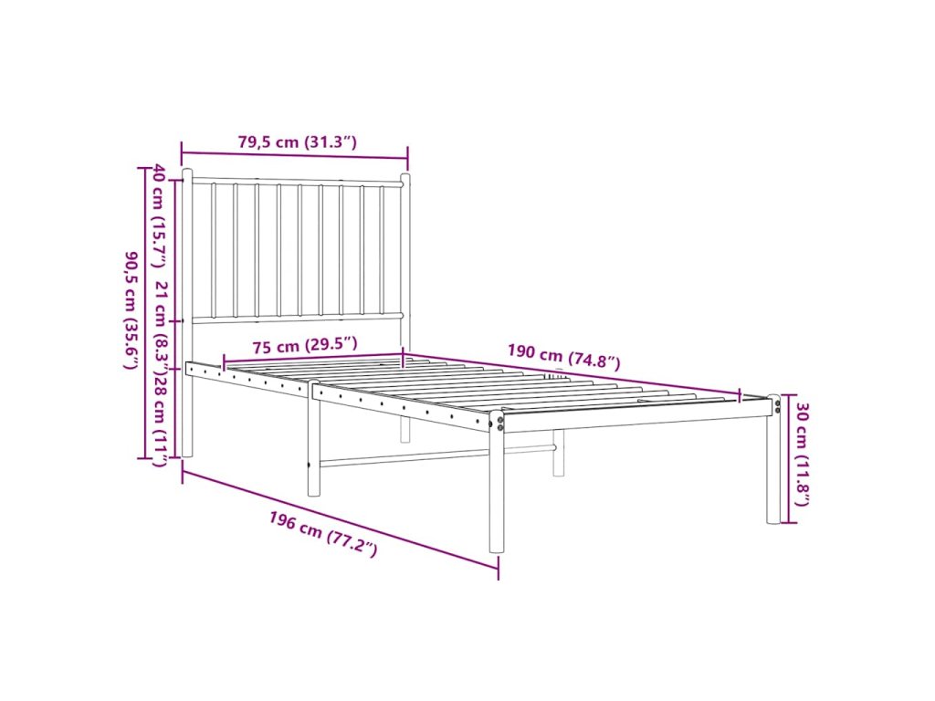 Kovový rám postele s čelem černý 75 x 190 cm 350854