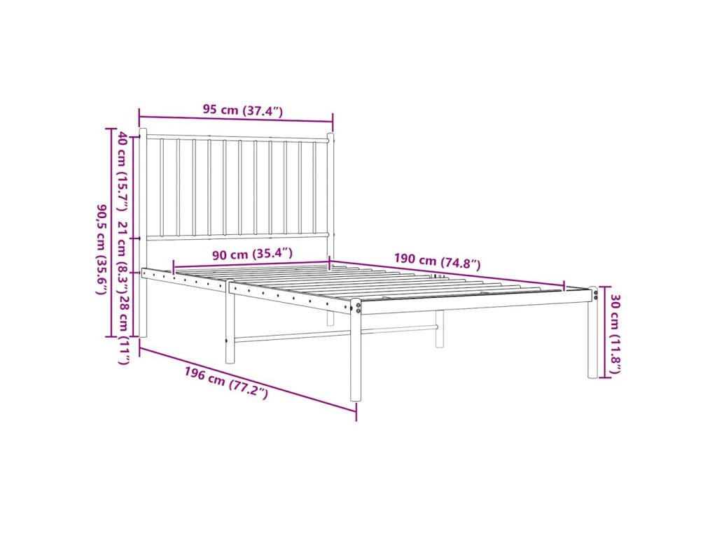 Kovový rám postele s čelem černý 90 x 190 cm 350856