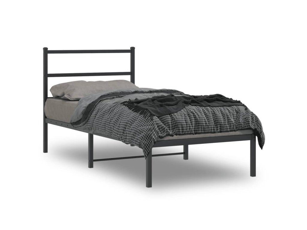 Kovový rám postele s čelem černý 90 x 190 cm 355357