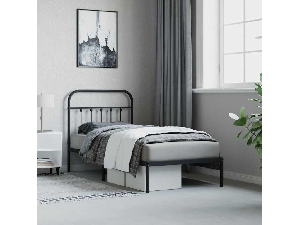 Kovový rám postele s čelem černý 90 x 200 cm 352571