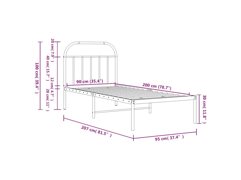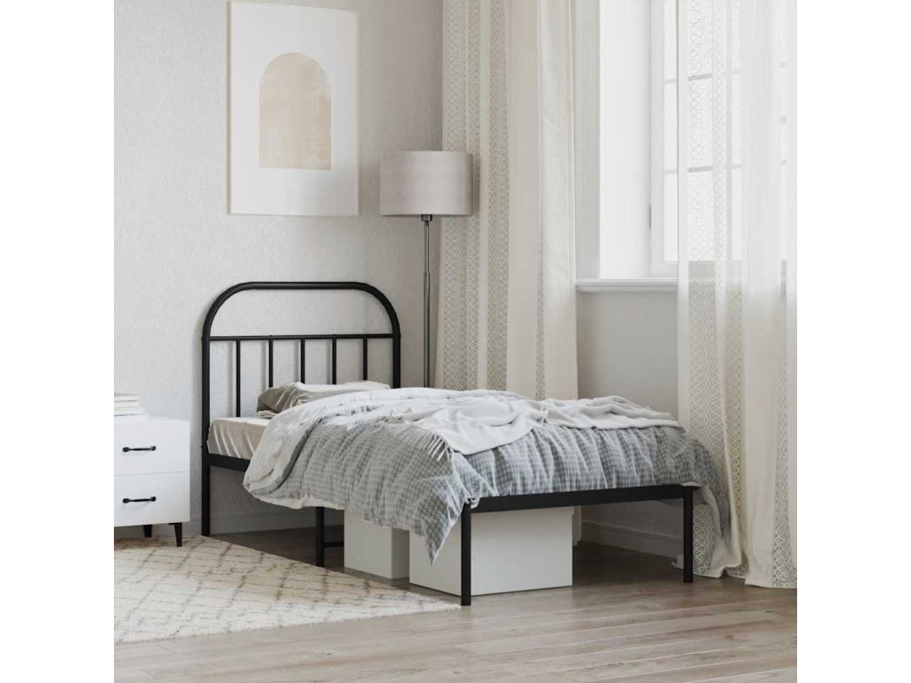 Kovový rám postele s čelem černý 90 x 200 cm 353628