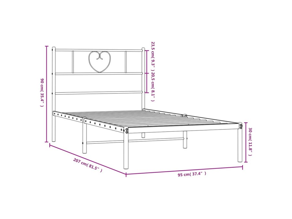Kovový rám postele s čelem černý 90 x 200 cm 355456