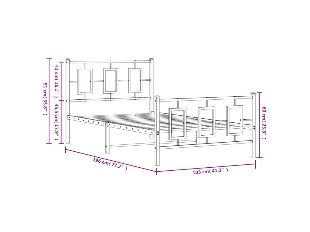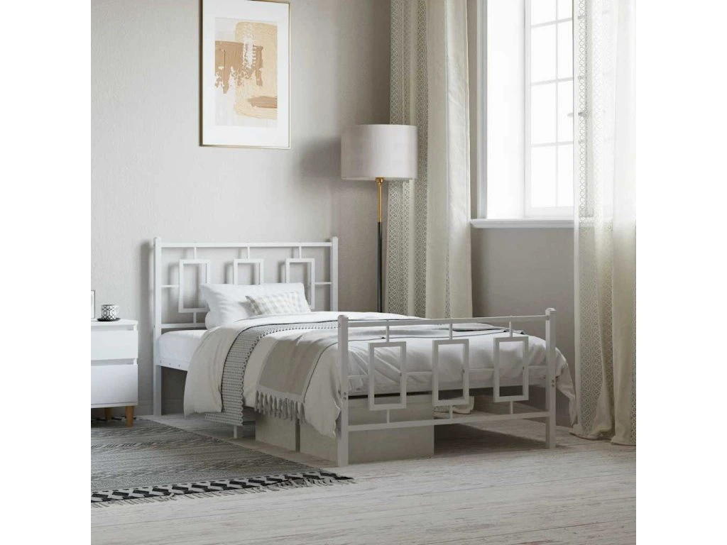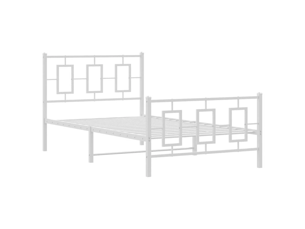 Kovový rám postele s hlavovým a nožním čelem bílý 100 x 190 cm 374302