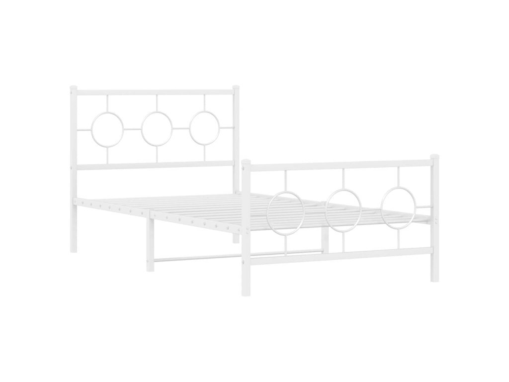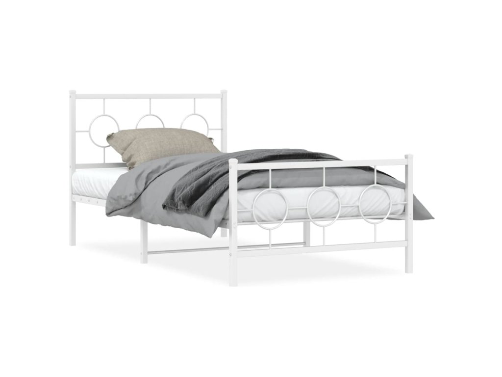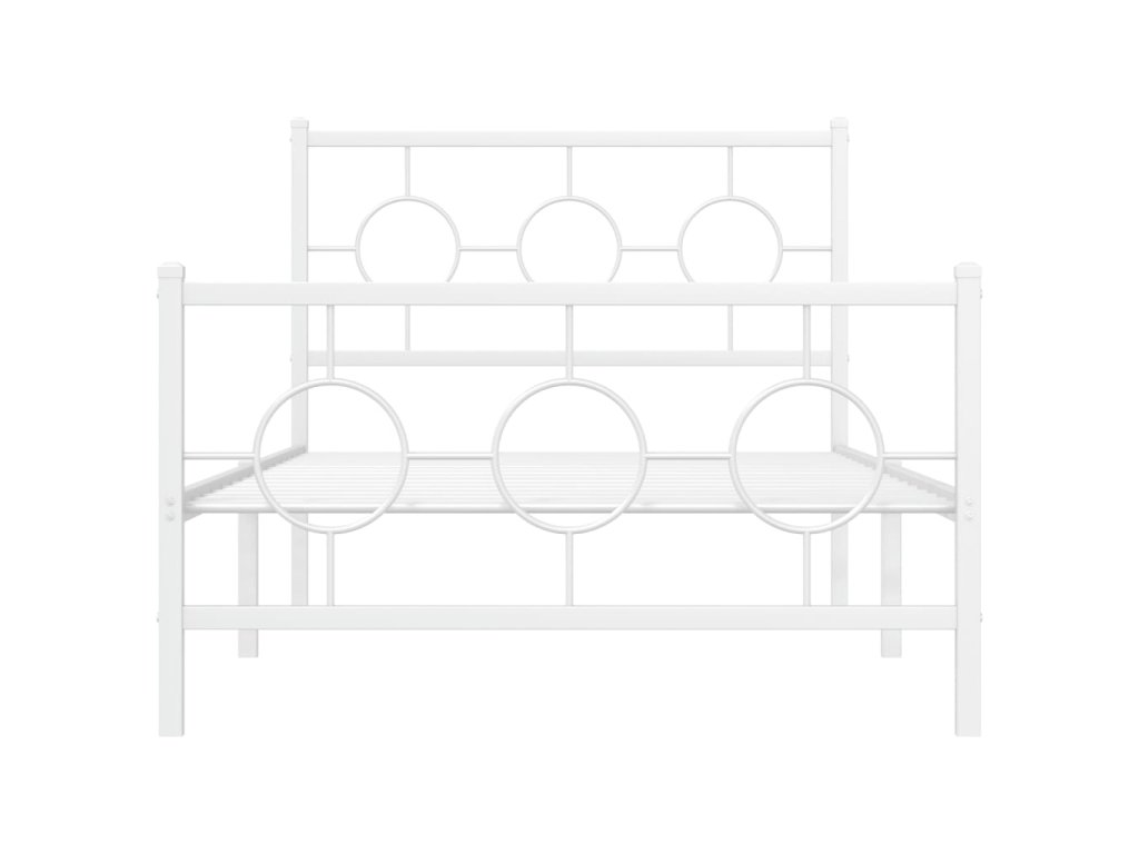 Kovový rám postele s hlavovým a nožním čelem bílý 100 x 190 cm 376287