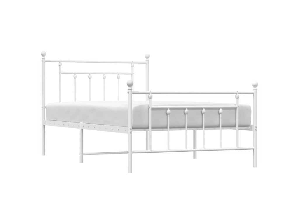 Kovový rám postele s hlavovým a nožním čelem bílý 100 x 200 cm 353599