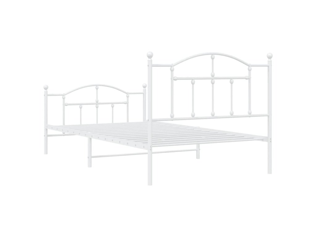 Kovový rám postele s hlavovým a nožním čelem bílý 107 x 203 cm 353502