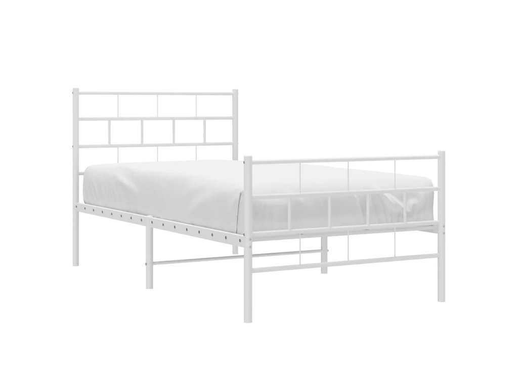 Kovový rám postele s hlavovým a nožním čelem bílý 107 x 203 cm 355722