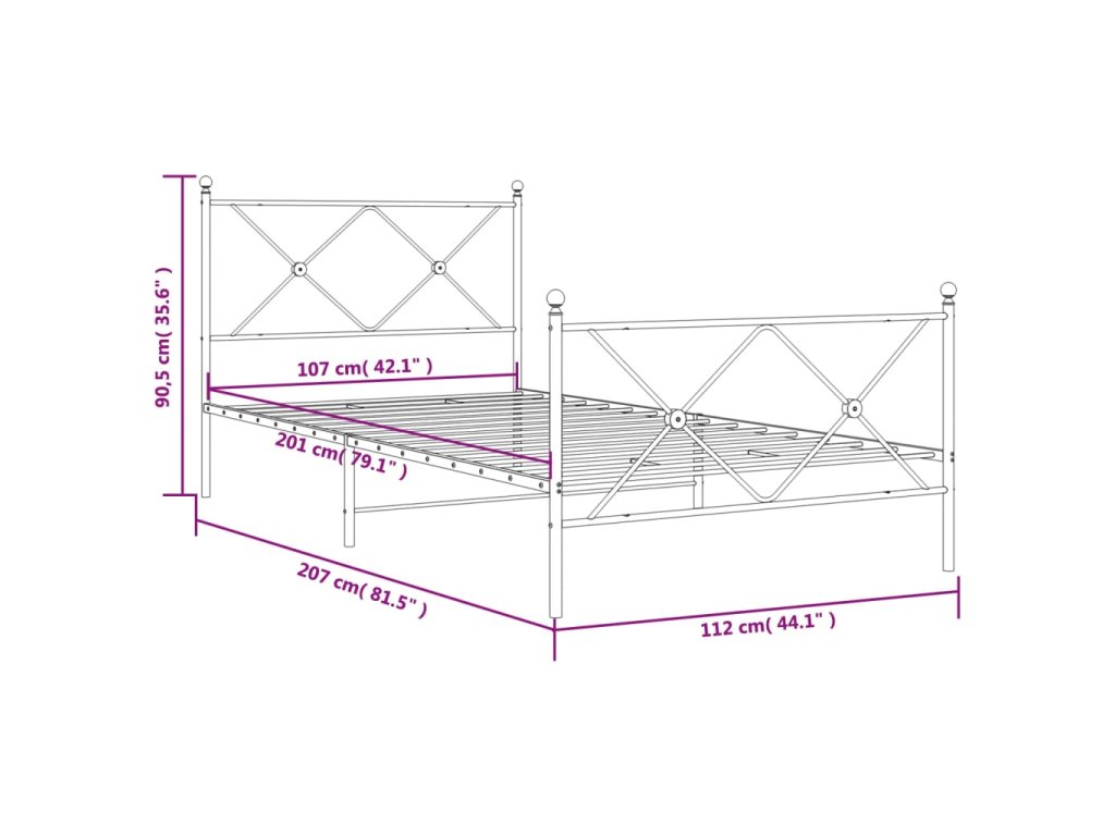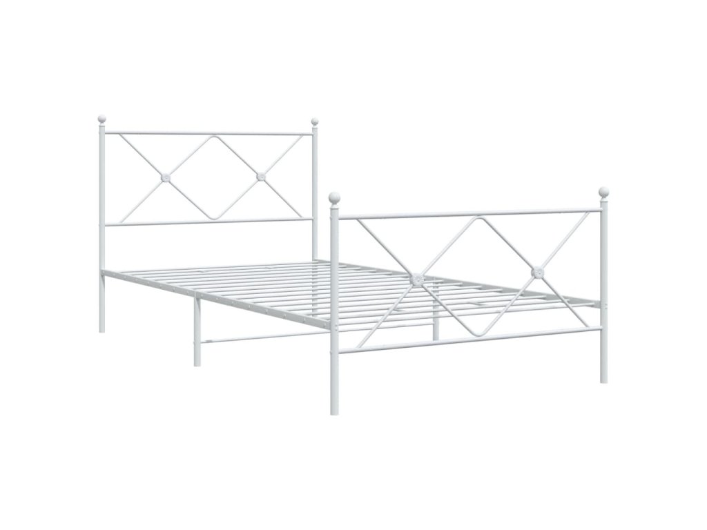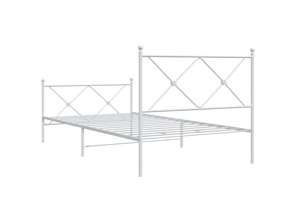 Kovový rám postele s hlavovým a nožním čelem bílý 107 x 203 cm 376565