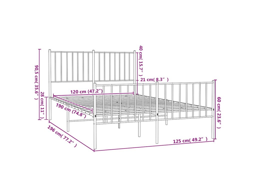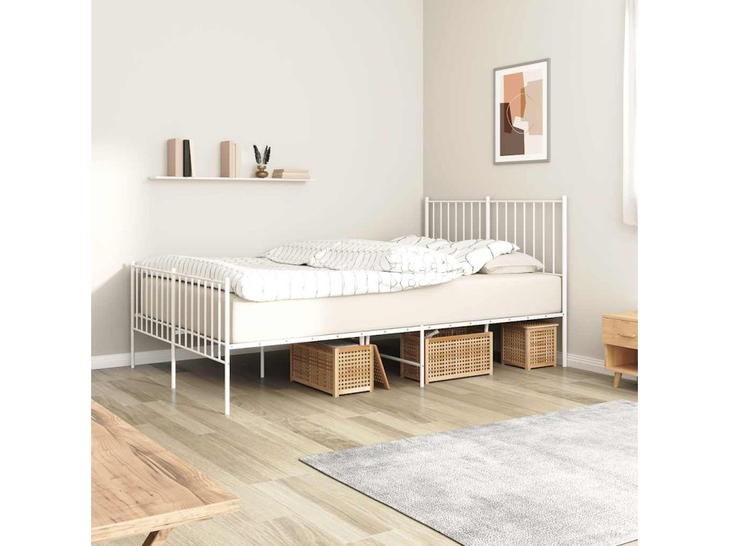 Kovový rám postele s hlavovým a nožním čelem bílý 120 x 190 cm 350946