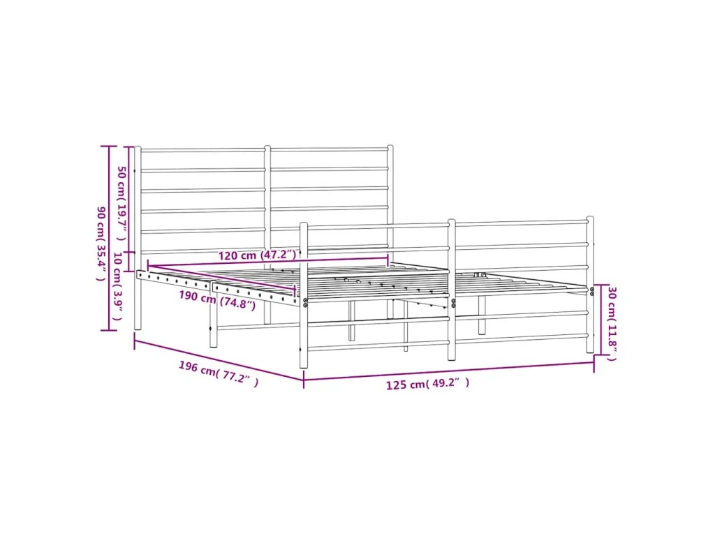 Kovový rám postele s hlavovým a nožním čelem bílý 120 x 190 cm 352383