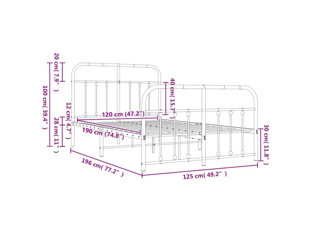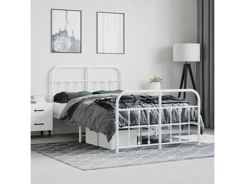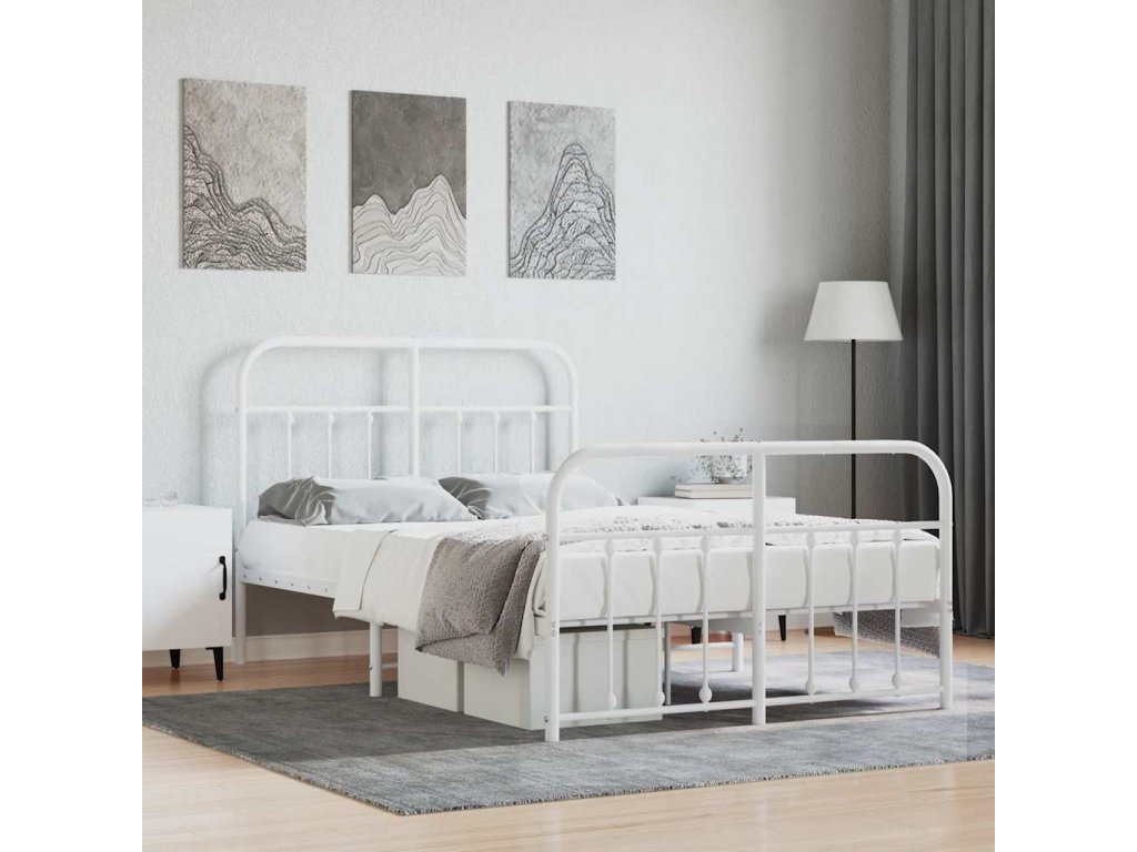 Kovový rám postele s hlavovým a nožním čelem bílý 120 x 190 cm 352642