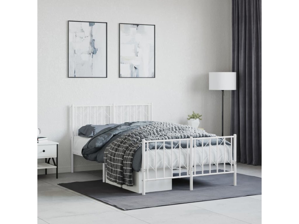 Kovový rám postele s hlavovým a nožním čelem bílý 120 x 190 cm 374501