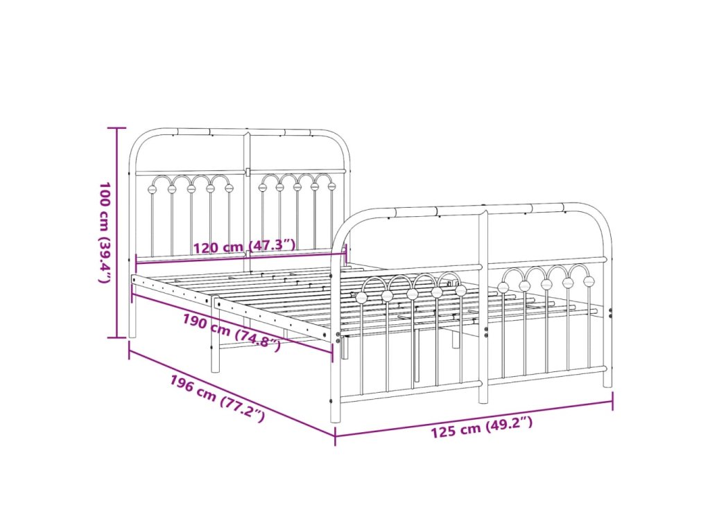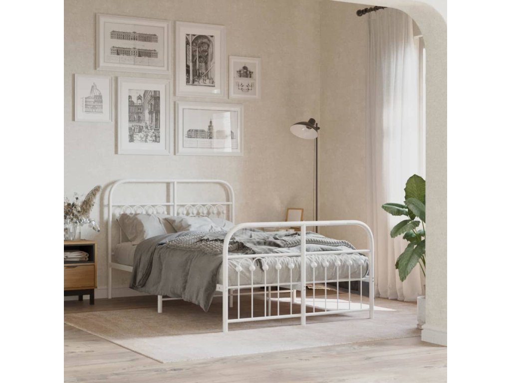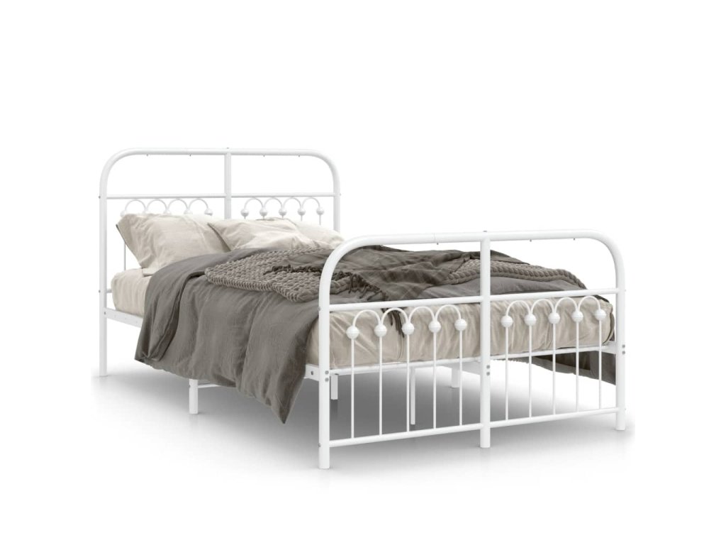 Kovový rám postele s hlavovým a nožním čelem bílý 120 x 190 cm 376664