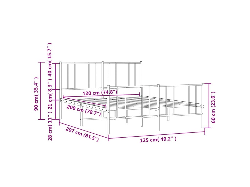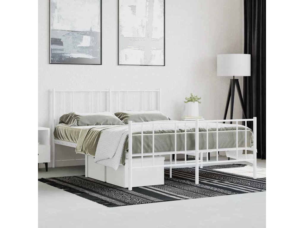 Kovový rám postele s hlavovým a nožním čelem bílý 120 x 200 cm 352545