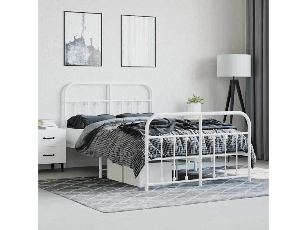 Kovový rám postele s hlavovým a nožním čelem bílý 120 x 200 cm 352643