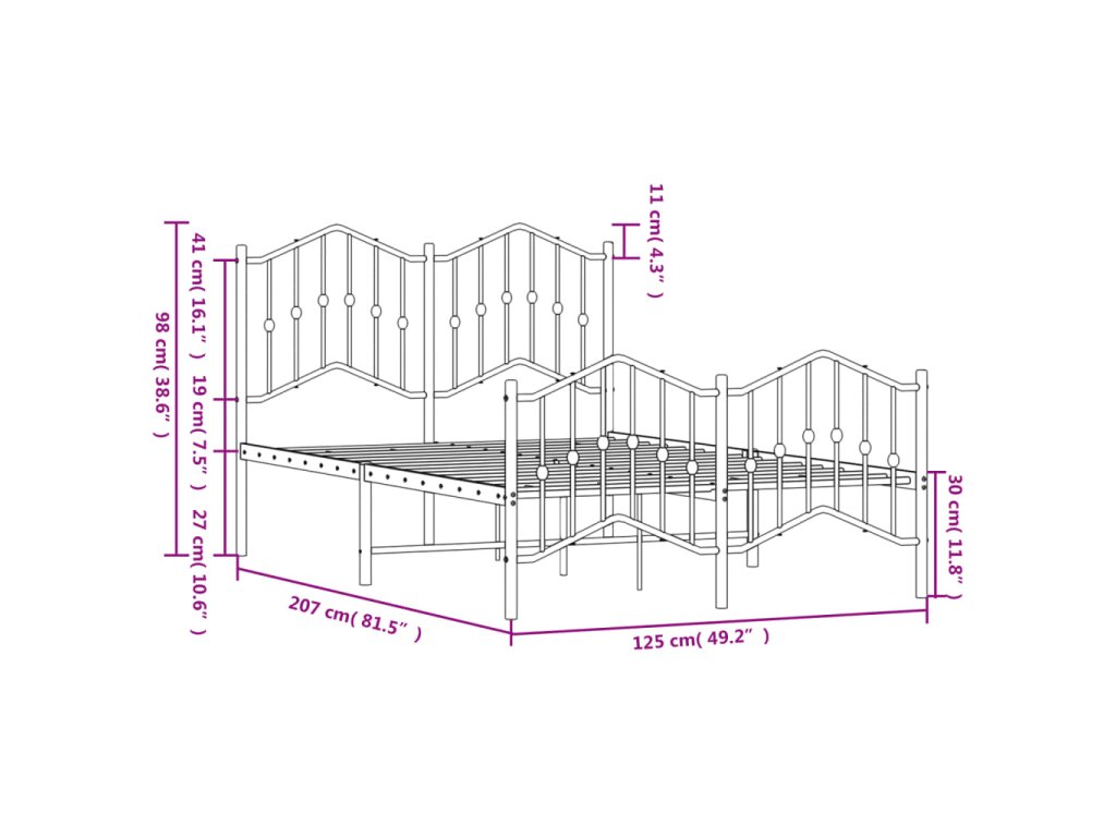 Kovový rám postele s hlavovým a nožním čelem bílý 120 x 200 cm 373854