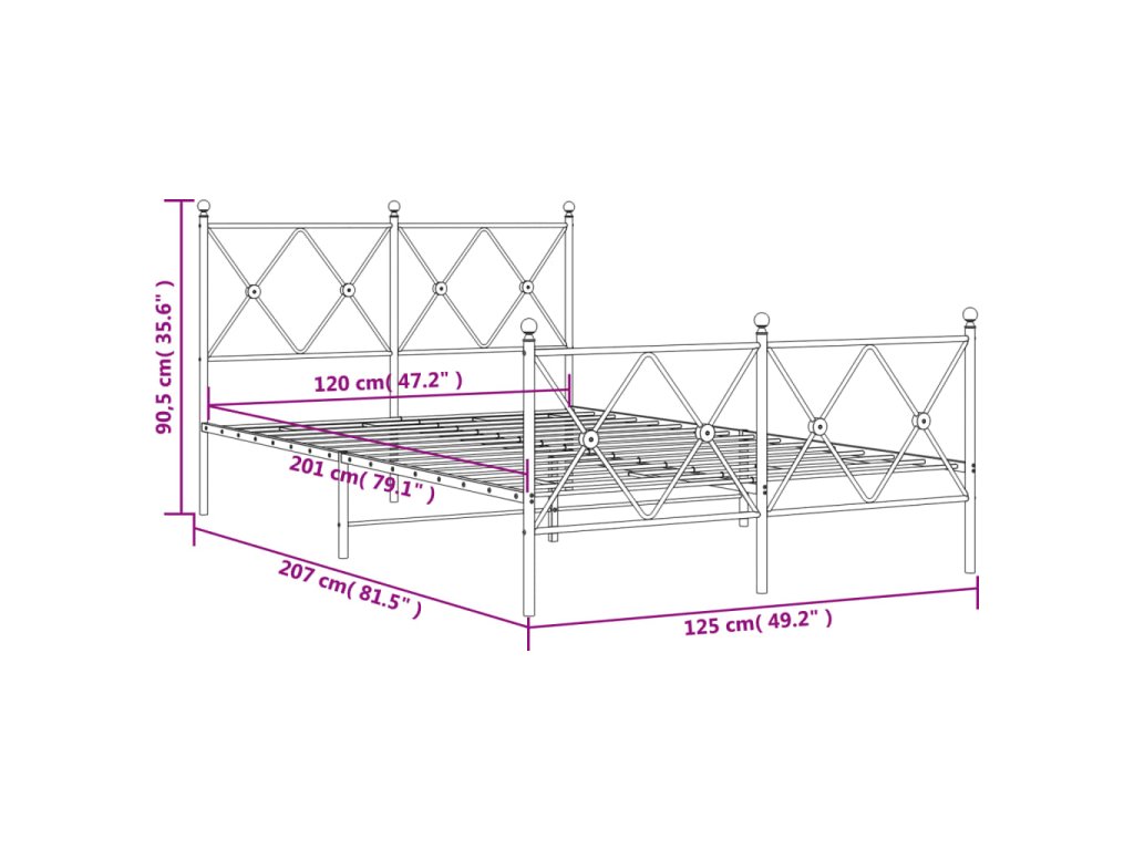 Kovový rám postele s hlavovým a nožním čelem bílý 120 x 200 cm 376567