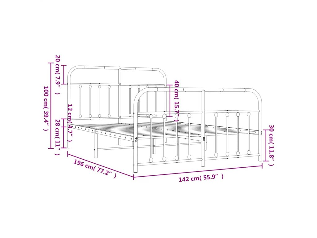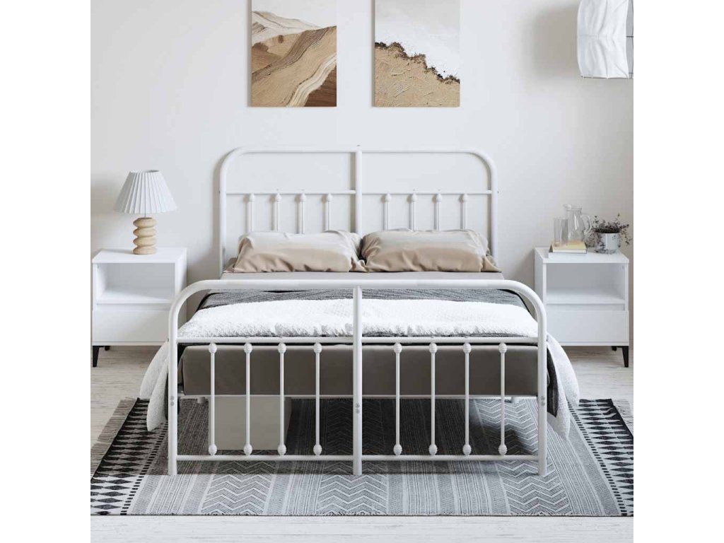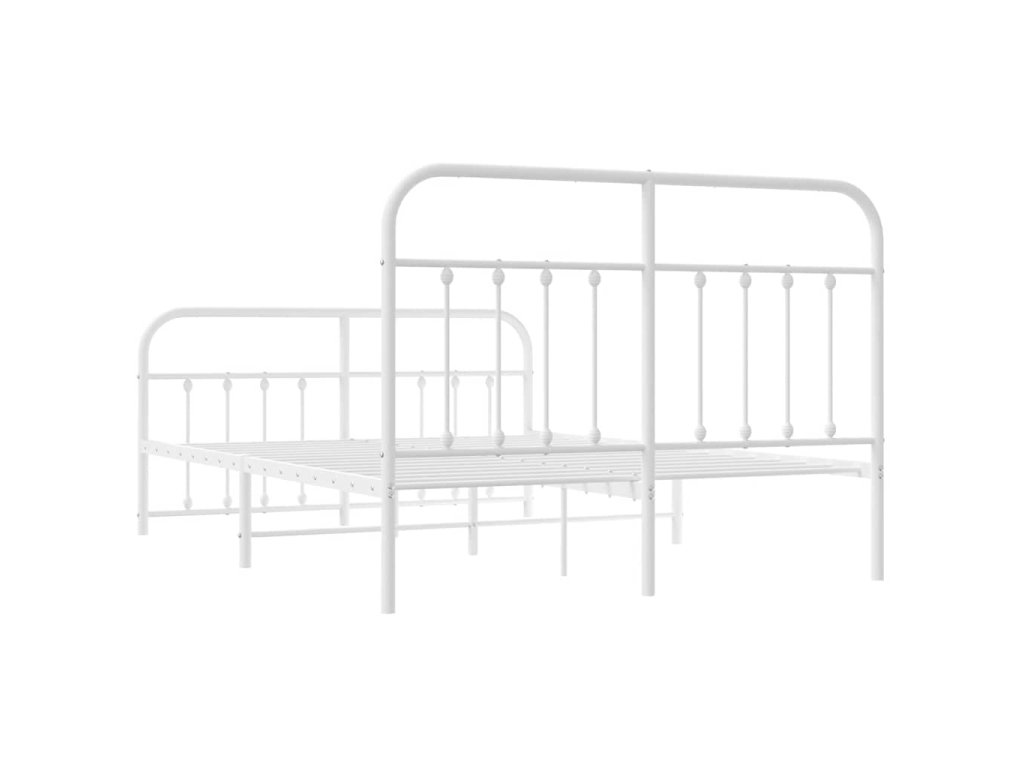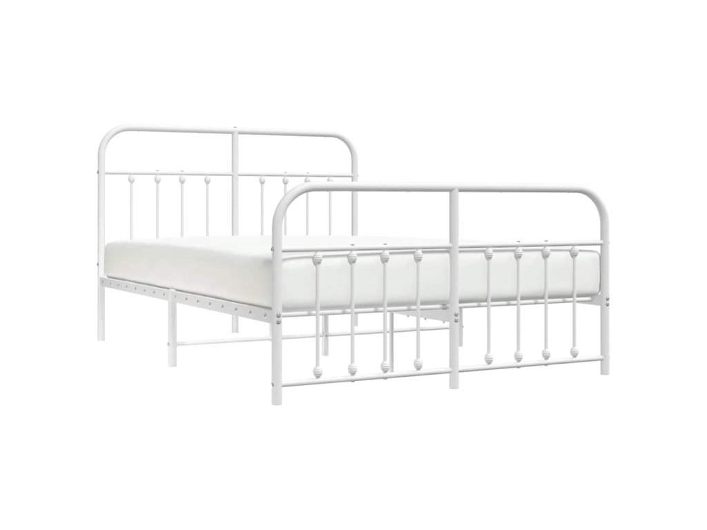 Kovový rám postele s hlavovým a nožním čelem bílý 135 x 190 cm 352644