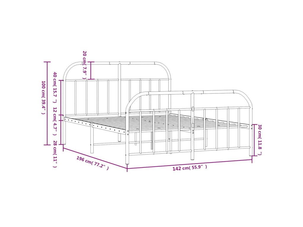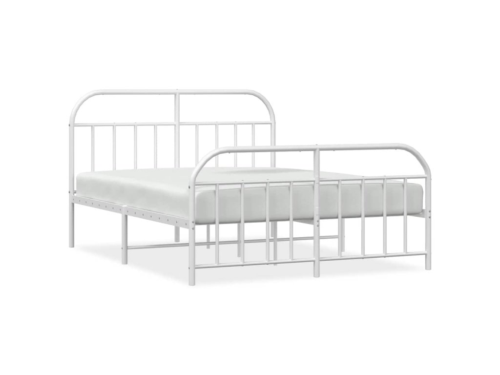 Kovový rám postele s hlavovým a nožním čelem bílý 135 x 190 cm 353701