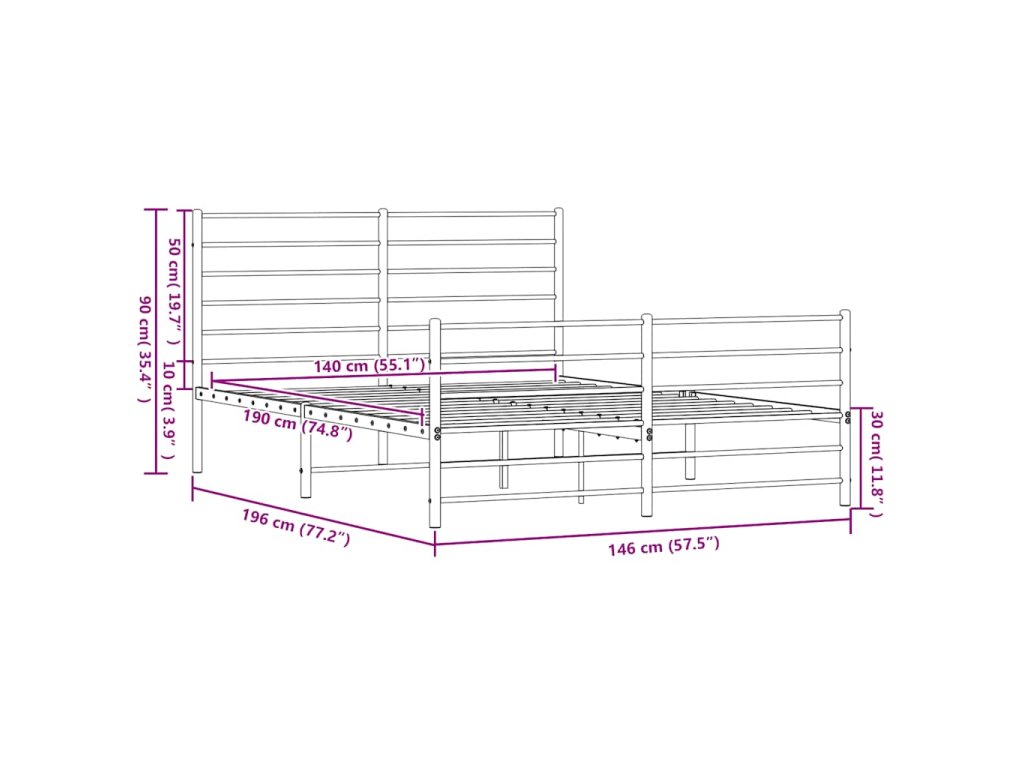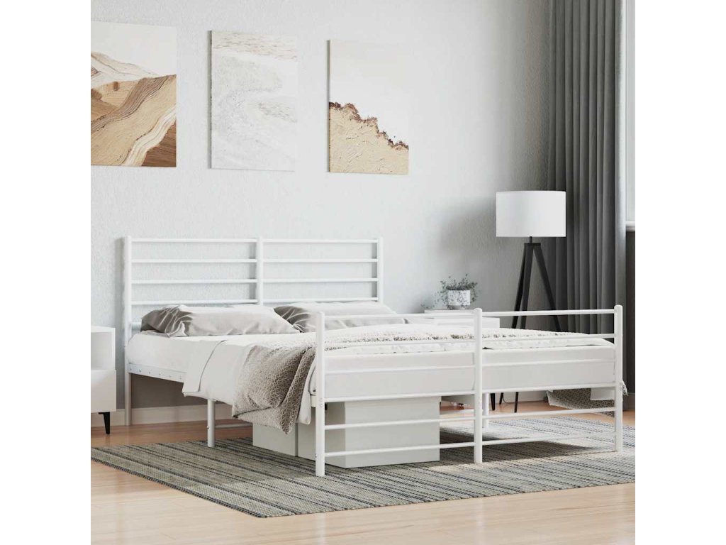 Kovový rám postele s hlavovým a nožním čelem bílý 140 x 190 cm 352386