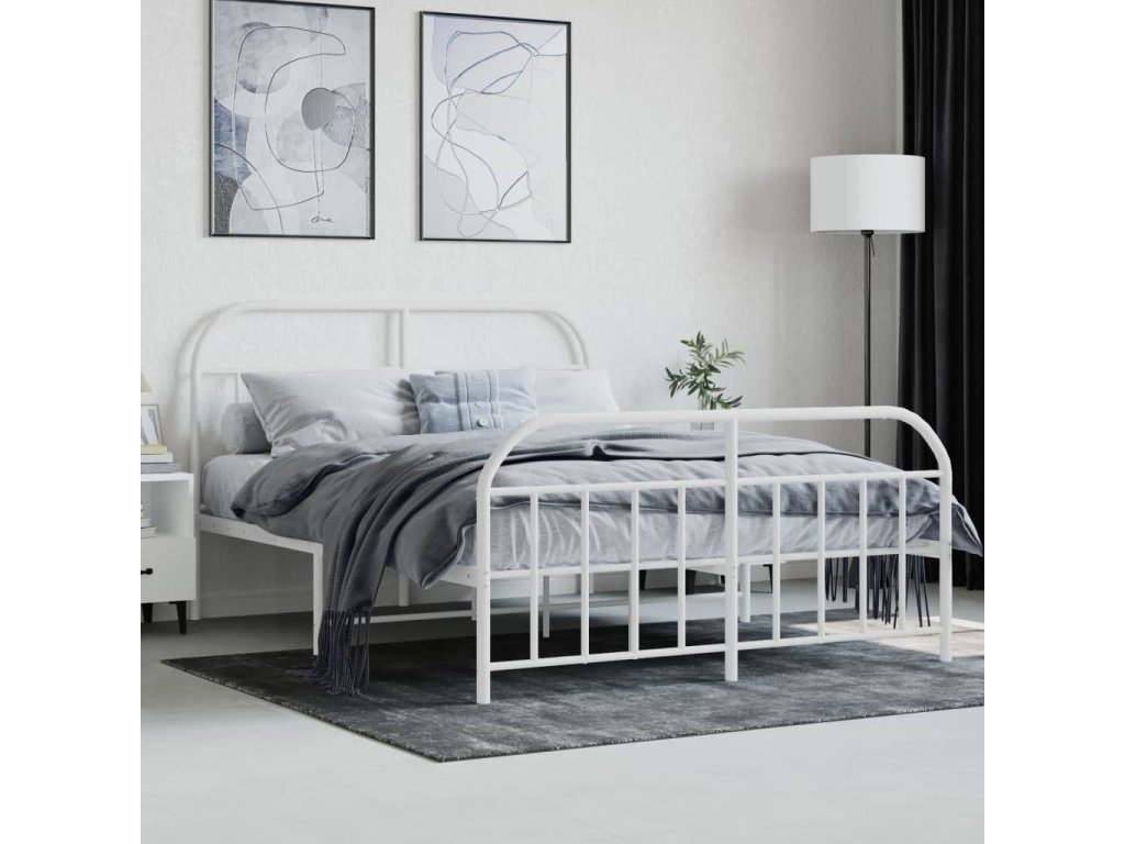 Kovový rám postele s hlavovým a nožním čelem bílý 140 x 190 cm 353702