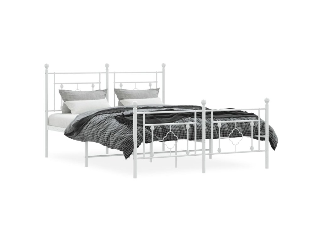 Kovový rám postele s hlavovým a nožním čelem bílý 140 x 190 cm 374406