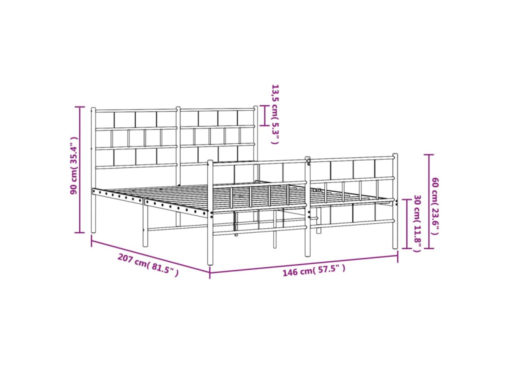 Kovový rám postele s hlavovým a nožním čelem bílý 140 x 200 cm 355727