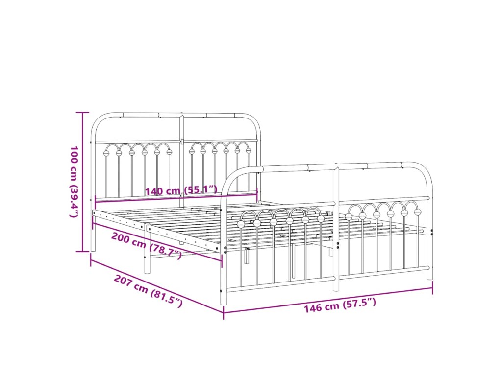 Kovový rám postele s hlavovým a nožním čelem bílý 140 x 200 cm 376668
