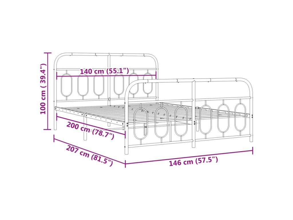 Kovový rám postele s hlavovým a nožním čelem bílý 140 x 200 cm 377185