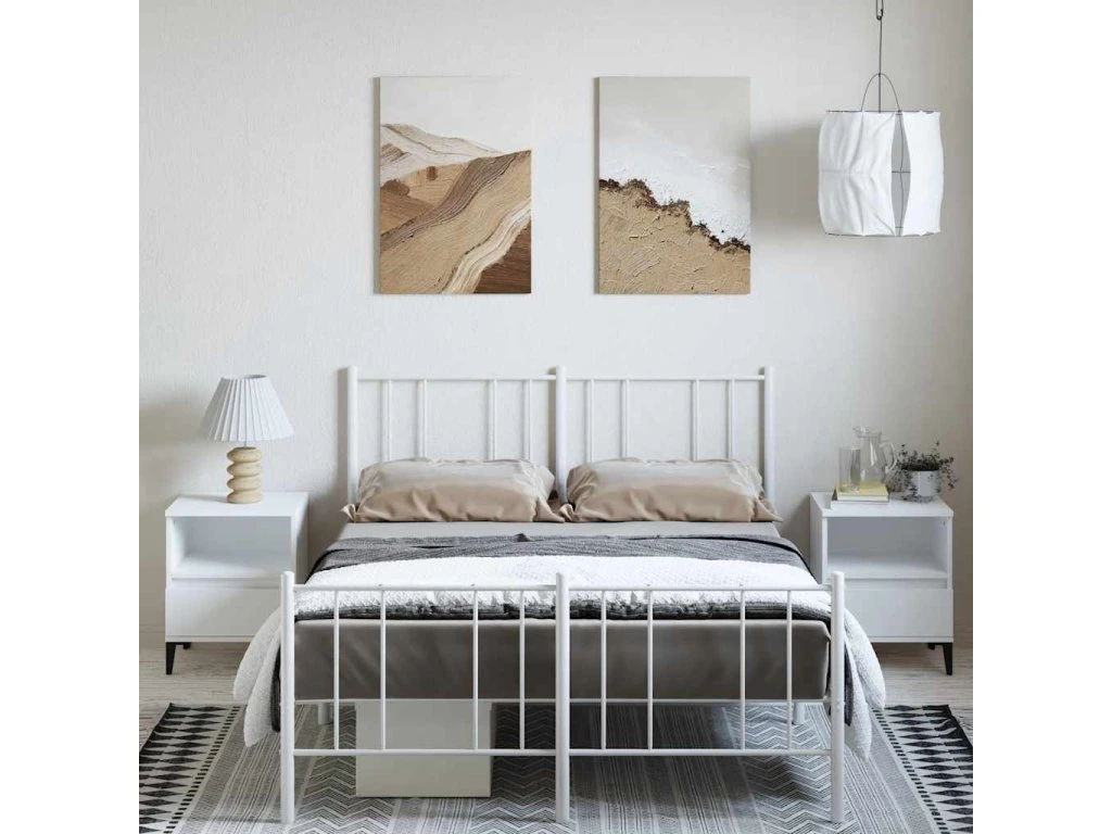 Kovový rám postele s hlavovým a nožním čelem bílý 150 x 200 cm 352549